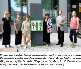 Für die Grünen Fraktion wurde Inge Fischer in die Bezirksvertretung aufgenommen und nach der einstimmigen Wahl auch zur stellvertretenden Bezirksbürgermeisterin vereidigt. Inge Fischer ist schon seit einigen Jahren in der Eilendorfer Stadtteilgruppe aktiv. Sie ist Diplom Biologin und hat einen Bachelor of Arts in Sozialer Arbeit. Seit der Kommunalwahl 2020 ist sie als sachkundige Bürgerin bzw. stellvertretende sachkundige Bürgerin Mitglied im Ausschuss für Schule und Weiterbildung sowie im Betriebsausschuss VHS. In Eilendorf werden ökologische Fragen und Mobilitätsthemen ihre Schwerpunkte sein.