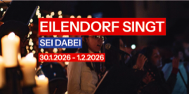 Vom 30. Januar bis 1. Februar 2026 verwandelt sich Eilendorf in ein klingendes Festivalgelände. Martin Kuen, Chorleiter des Chores Tonart Eilendorf und Marcel van Westen, Kantor von St. Severin, laden zu „Eilendorf singt!“ Menschen jeden Alters und jeder Erfahrung ein, die Freude am Singen zu entdecken, zu teilen und zu feiern. Ob im Chor, als SolistIn, bei einem Workshop oder einfach im Publikum, hier ist jede Stimme willkommen.