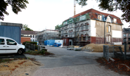 Trotz allem ist auf der Baustelle Kaiserstraße in den letzten Monaten schon viel passiert. Der Trakt zwischen Schulaltbau und dem seitlichen Klassentrakt, in dem ursprünglich Aula und Verwaltung waren, ist abgerissen worden, und der Neubau ist schon teilweise errichtet. Der Fachklassentrakt ist ebenfalls abgerissen, die Baugrube befüllt und die Schadstoffsanierung abgeschlossen.