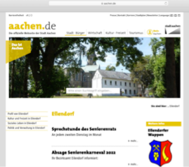 Alle Informationen rund um den Stadtbezirk Eilendorf sind auf der Internetseite der Stadt Aachen zusammengefasst. Hier finden Bürger*innen Informationen zu Vereinen, Institutionen, Verwaltung, Politik und vielem mehr.