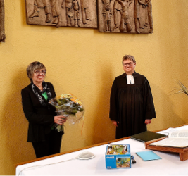 Im Gottesdienst zu Ostern wurde sie in der Versöhnungskirche verabschiedet. Pfarrer Hans Christian Johnsen sagte in seiner Predigt zu ihr: „Liebe Rosi! Es ist richtig, einmal Rückschau zu halten und die Zeiträume in den Blick zu nehmen, in denen du unsere Gemeinde und die Menschen begleitet hast. 1996 bist du in das Presbyterium der Kirchengemeinde gewählt worden. Du hast ehrenamtlich in der Diakonie und der Seelsorge gewirkt, in den damaligen Diakonieausschuss. Dann hast Du die Stelle der Gemeindeschwester übernommen. Das war im Jahr 1998. Die Stelle als Gemeindeschwester hat eine lange Tradition hier in Eilendorf, länger als es Pfarrer in dieser Gemeinde gegeben hat. Du hast die Menschen besucht. Dich um Bedürftige gekümmert. Auf Ämtern und bei Arztbesuchen begleitet. Für Menschen geschaut nach Trost, praktische Hilfe, vieles Sichtbares, noch viel mehr nicht so Sichtbares. Bei den Gemeindefesten, bei der großen Seniorenadventsfeier, bei der Frauengruppe, beim Geburtstagskaffee, auch mal gerne bei der Konfirmandenfreizeit, oder bei unseren Ausflügen. Du hast auch die Menschen im Ostviertel mit in den Blick genommen, als Veränderungen im Hinblick auf die Fusion anstanden. Du hast im Presbyterium des Bereichs Nord mitgewirkt. Im Namen der Kirchengemeinde danken wir dafür, dass du deine Gaben und Kräfte für die Menschen eingesetzt hast. Nun ist die Zeit gekommen, Abschied von dieser Arbeit zu nehmen. Beim Prediger Salomo heißt es: Ein jegliches hat seine Zeit und jeder Vorhaben unter dem Himmel hat seine Stunde. Gott hilft uns, anzunehmen und loszulassen. Gott trägt uns durch den Abschied hindurch.“