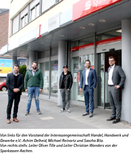 Im Februar 2019 wurde in der Sparkassen-Filiale an der Von-Coels-Straße der langjährige Leiter Thomas Emundts verabschiedet. In diesem Rahmen begrüßten Bezirksbürgermeisterin Elke Eschweiler und weitere geladene Gäste den neuen Leiter Christian Wanders in Eilendorf.