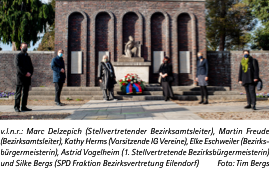 Gemeinsam mit den neuen stellvertretenden Bezirksbürgermeisterinnen Astrid Vogelheim und Fabia Kehren sowie unserem Bezirksamtsleiter Martin Freude ist – mit dem nötigen räumlichen Abstand – die Kranzniederlegung erfolgt und stellvertretend für Sie haben wir die Kriegsgräber mit weißen Rosen geschmückt.