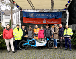 Auf dem diesjährigen Eilendorfer Weihnachtsmarkt wurde das Lastenrad von der Bürgergruppe Fahrradfreundliches Eilendorf offiziell eingeweiht. Eine Vielzahl von interessierten Besucherinnen und Besuchern nutze die Möglichkeit sich über die Ausleihmöglichkeit und das Rad zu informieren. Auch Heimatverein Mitglied Josephine Reiff, geborene Bartz, nach der das Eilendorfer Lastenrad benannt wurde, machte sich gemeinsam mit der Bezirksbürgermeisterin Elke Eschweiler und dem Bezirksamtsleiter Martin Freude ein Bild vom „Finchen“. Sie war begeistert vom neuartigen Elektroantrieb, der ihr in früheren Zeiten eine deutliche Erleichterung im Alltag mit ihrem Lastenrad gewesen wäre. Finchen Reiff hat bereits in den frühen 40er Jahren des letzten Jahrhunderts mit einem Lastenrad die Einkäufe aus ihrem Lebensmittelgeschäft in Eilendorf ausgeliefert. Die heute 92-jährige freut sich über die Namenswahl und wünscht sich weitere Lastenräder für Eilendorf, da sie diese „för en jou Saach“ hält. Eine Probefahrt durfte natürlich auch nicht fehlen. Kurz vor Weihnachten wurde auch die eigens für Lastenräder konzipierte Garage geliefert, die sich hinter dem Bezirksamt Eilendorf auf dem Parkplatz befindet. Dort kann das Rad ab Januar kostenfrei über das Buchungsportal www.beladeschaeng.de ausgeliehen werden. Voraussetzung ist eine einmalige Registrierung und eine nachgewiesene Einführung mit Probefahrt.