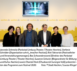 25! Das ist die wohl am häufigsten genannte Zahl bei der Pressekonferenz zum schrit_tmacher Festival 2020 Ende November. Denn zum 25. Mal reißt das Festival mit hochkarätigen Aufführungen die gesamte Euregio mit. Doch die 25 ist auch nur eine Zahl von vielen. Zehn Jahre ist das Festival bereits in der Fabrik Stahlbau Strang in Aachen. Hiervon können zum Beispiel die Eilendorfer besonders profitieren, da der Aufführungsort näher an unserem Stadtteil als an Aachens Zentrum ist. Die Beigeordnete für Bildung und Kultur der Stadt Aachen, Susanne Schwier, betont: „Es ist ein erstaunlicher Reifungsprozess, den wir mit schrit_tmacher erleben. Vom kleinen experimentellen Tanztheater zum renommierten Festival mit weltbekannten Kompanien, beeindruckenden Locations und toller grenzüberschreitender Partnerschaft.“ Inzwischen legt das Festival in der gesamten Euregio einen künstlerischen und kulturpolitischen Schwerpunkt.