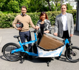 Für Fahrradfahrer gibt es in Eilendorf bald eine großartige Neuerung: Das neue Lastenfahrrad. Der stellvertretende Bezirksamtsleiter Ron-Roger Breuer ließ es sich nicht nehmen, die Wahlkoffer am Tag der Europawahl selbst mit dem neuen Lastenfahrrad im Bezirk auszuliefern. Vorgestellt wurde das Rad, das im Rahmen der Rad-Vorrang-Route Aachen I von der Stadt Aachen angeschafft wurde, bereits am Tag der offenen Türe des Bezirksamtes. Viele Besucher haben das Lastenfahrrad selbst ausprobiert und waren begeistert. Auch Bezirksbürgermeisterin Elke Eschweiler und der Bezirksamtsleiter Martin Freude sind überzeugt von dem Erfolg des Projektes, das gerade in Zeiten des Klimawandels und der sich stetig verändernder Mobilität eine Möglichkeit bietet, sich klimafreundlich fortzubewegen und beispielsweise Einkäufe nach Hause zu bringen. Außerdem bieten zwei Kindersitze die Möglichkeit, Familienausflüge zu unternehmen. Die Nutzung des Lastenfahrrads soll möglichst zeitnah möglich gemacht werden. Noch laufen Gespräche der Bürgergruppe fahrradfreundliches Eilendorf, der Interessensgemeinschaft Eilendorfer Handel, der Bezirksvertretung Eilendorf und der Stadt Aachen, sodass bald Informationen folgen, ab wann und wo das Fahrrad geliehen werden kann. Wieder ein großer Pluspunkt für unser Dorf!