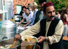 Die rund 60 Besucher aßen anschließend bei herrlichem Spätsommer Wetter gemeinsam im Garten der OT-Eilendorf, bevor am Abend, beim gemeinsamen Tanz zu traditioneller Afghanischer Musik, die Premiere des Projektes einen ebenso gelungenen Abschluss fand.