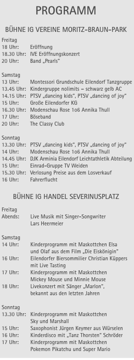 Darüber hinaus gibt es auf dem Bürgerfestwochenende noch viel mehr im Zentrum Eilendorfs zu erleben, kommen Sie vorbei! Hier ist für jeden etwas dabei!