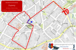 Dank des Engagements der Organisatoren der IG Eilendorfer Vereine ist es auch in diesem Jahr den Jecken wieder vergönnt, den Eilendorfer Straßenkarneval in vollen Zügen zu genießen! Die Organisatoren bitten die Anwohner, den Zugweg so Auto-frei wie möglich für die Zeit des Umzuges zu halten.