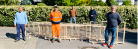 Im Zuge der Corona Pandemie waren auch innerhalb der Stadtverwaltung Aachen kreative Lösungen gefragt. Schon zu Beginn der Pandemie wurden die Publikumsarbeitsplätze im Eilendorfer Bezirksamt mit Spuckschutzwänden ausgestattet, nachdem Bezirksamtsleiter Martin Freude und sein Stellvertreter Ron-Roger Breuer auf die ersten Spuckschutzwände im Einzelhandel aufmerksam wurden. Erfreulicherweise konnte durch diese Maßnahme eine dauerhafte Erreichbarkeit der Mitarbeitenden im Eilendorfer Bezirksamtes gewährleisten. Den Bau der Spuckschutzwände hat der Eilendorfer Bezirksservice übernommen. Volker Clement, Hausmeister im Bezirksamt Eilendorf wurde dabei von Jeronimo Lang, Hans Keusch und Carlos Weiter unterstützt. Auch viele weitere städtische Dienststellen wurden auf die Wände aufmerksam und nach und nach gingen größere Bestellungen über den Arbeitsschutz im Bezirksamt Eilendorf ein. So wurden in den letzten Wochen über 400 Spuckschutzwände für unterschiedliche städtische Dienststellen gefertigt. Eine große Herausforderung stellte in diesem Zusammenhang die Beschaffung der Plexiglasfolie dar, die in vielen Baumärkten ausverkauft war. Dennoch konnten immer wieder neue Bestände gefunden werden und somit eine große Menge an Steuergeldern gespart werden. Während im Handel die Spuckschutzwände vielfach 80 Euro und mehr kosteten, war es den Mitarbeitenden des Bezirksservice möglich diese für sechs bis acht Euro pro Stück zu produzieren und auszuliefern. Dank des Engagements der Kollegen des Eilendorfer Bezirksservice sind viele Mitarbeitenden im Publikumsverkehr der Stadtverwaltung Aachen geschützt worden.